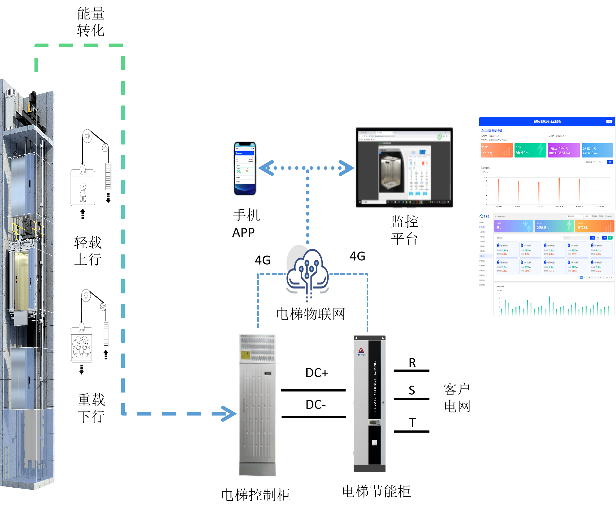 为了进一步提升用户体验,我们还提供了配套的电梯节能云平台。用户可以通过这个平台实时监控电梯节能产品的性能表现,并借助物联网技术获取直观的数据服务,包括电梯运行状态、电量反馈、节约的电量及其对应的碳排放量等信息。这使得用户可以轻松掌握电梯每日、每月乃至每年的节能效果,让节能减排变得更加透明、可量化,同时也为绿色建筑贡献了一份力量。