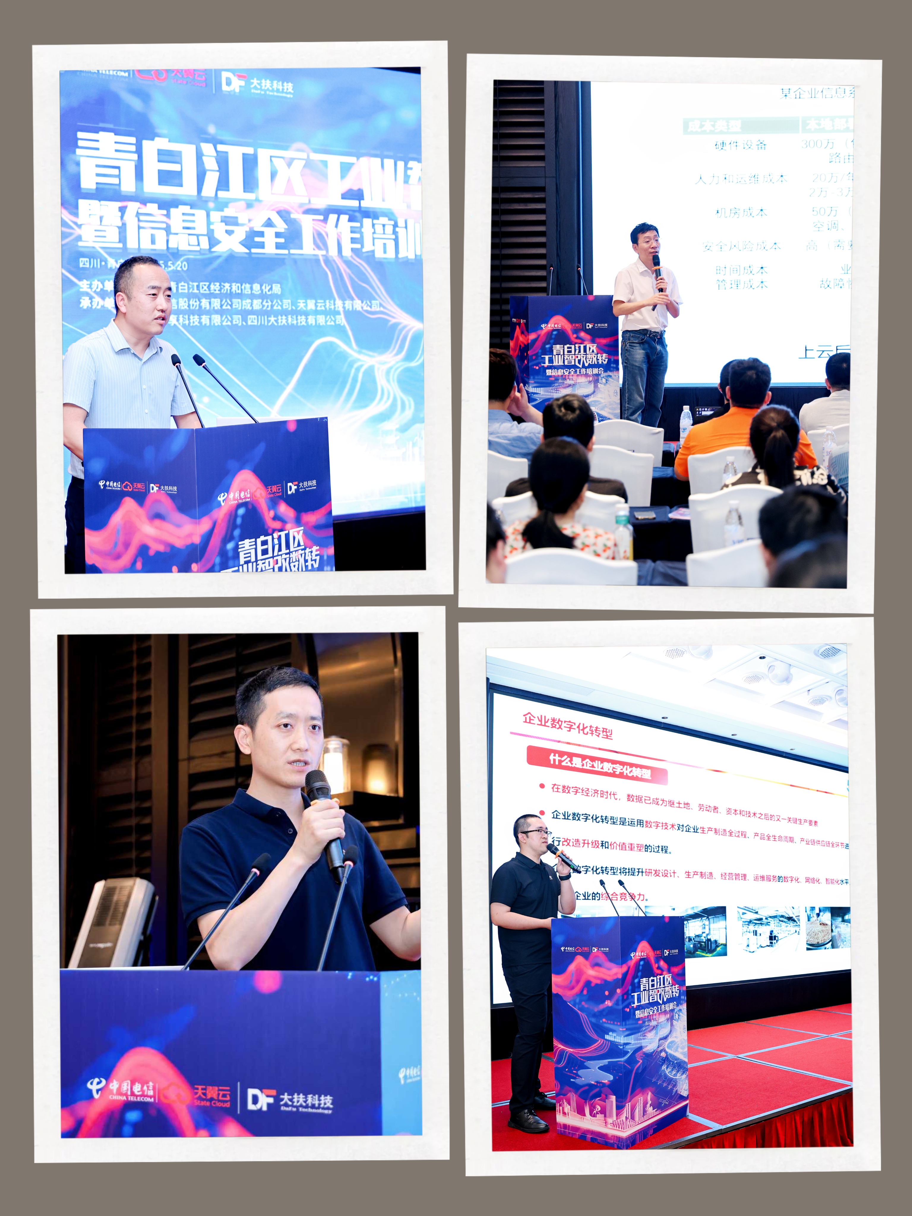 为加快推进青白江区工业企业智能化改造数字化转型,提升工业信息安全防护水平,5月20日,成都市青白江区经济和信息化局组织举办了工业智改数转暨信息安全工作培训会,区内众多工业企业代表参加了此次会议。本次培训会由四川大扶科技有限公司联合中国电信股份有限公司成都分公司、天翼云科技有限公司、成都博享科技有限公司共同承办。